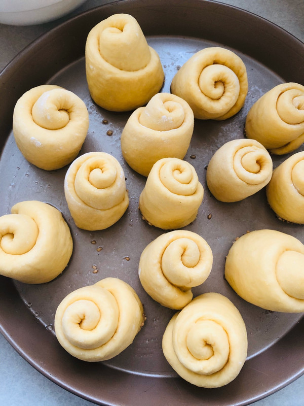面包胚放入烤盘,底部抹油,形成脆底面包,再次第三次醒发30分钟,面团变大