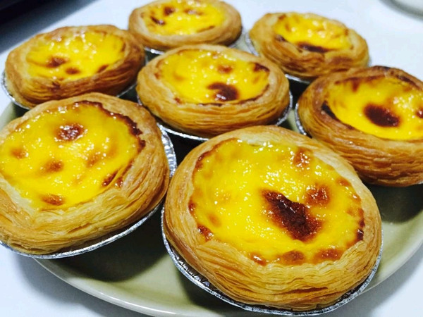 烤箱预热,15分钟。然后放入烤箱,上管210°,下管210°,烤25分钟。(如果想蛋挞皮底部更脆,可以单独下火多烤5-10分钟)