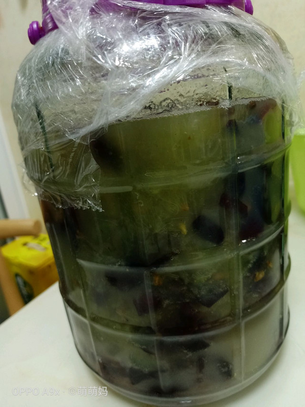 一层葡萄一层冰糖装罐封存,我是买的这种10斤装的瓶子,专门酿酒或者腌咸菜都可以的,瓶口用保鲜膜封住,然后用手轻轻往下压压,让保鲜膜凹进去一点,这样后期发酵胀气就不会顶出来