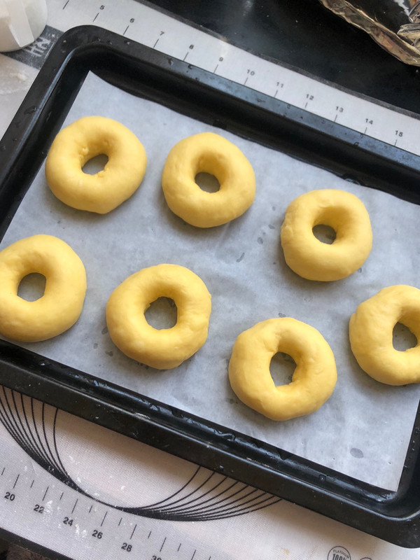 锅里烧油,大火烧至六成热,转小火,下甜甜圈下锅炸