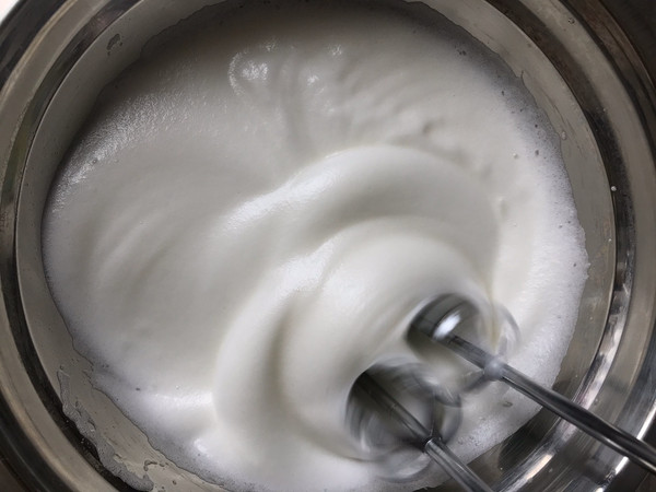 蛋清中加入几滴柠檬汁,打蛋器二三档开始打发