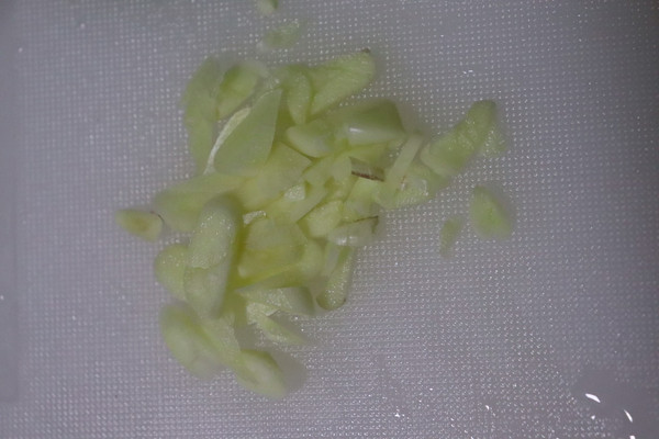热锅凉油,油热下蒜米