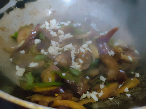 起锅烧油,放花椒,小米椒,葱花暴香,先放入切好的螺丝辣椒,翻炒1分钟后加入茄子进行翻炒,过3分钟后,再加入2勺生抽,1勺老抽上色,最后放入适量盐,根据个人口味调试