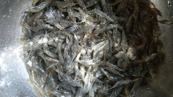 小河虾反复淘洗干净,去掉杂质,控干水分。