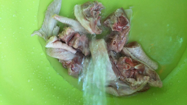 多功能锅加入适量的水放入鸡肉煮开撇掉浮沫。