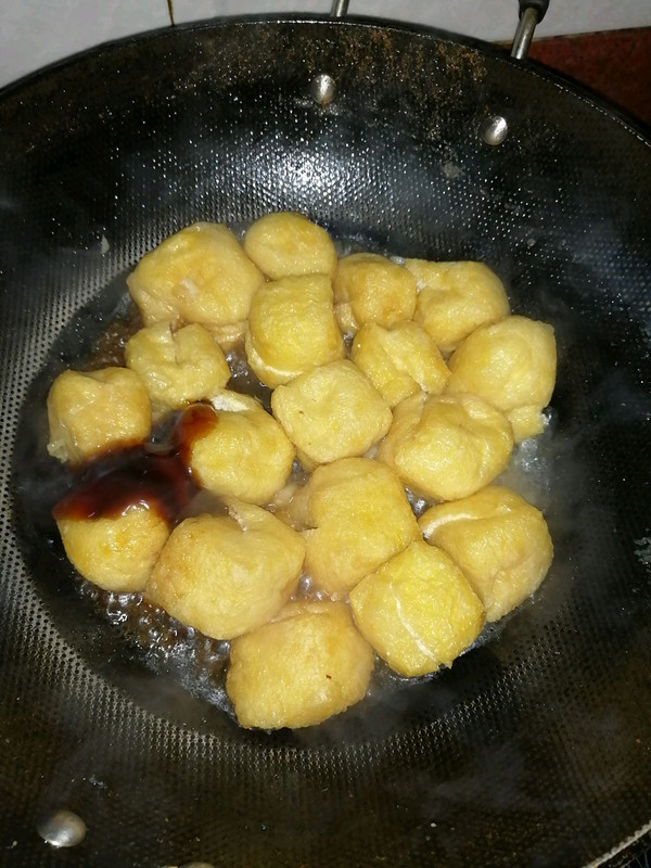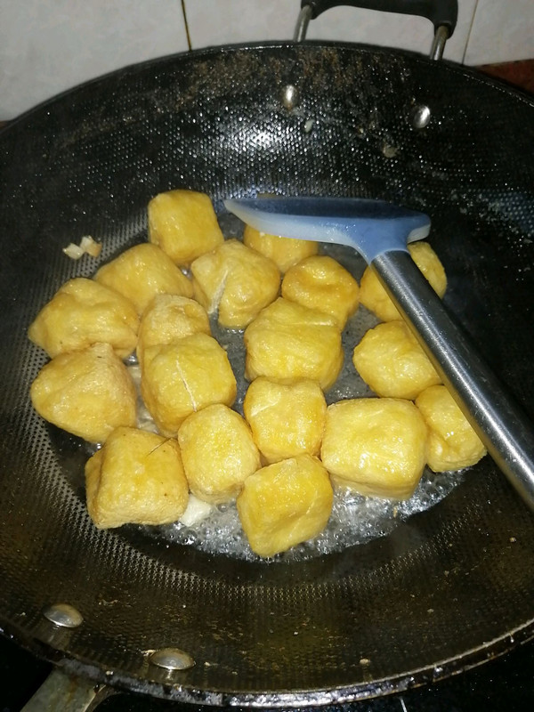 放切好的豆泡 翻炒加水淹至豆泡全身 (有条件的可以加肉末)