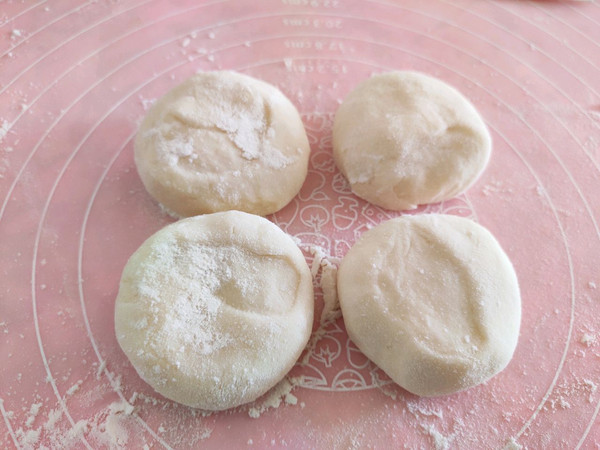 我习惯将面团分成四份,都揉匀成光滑面团,留一份,其余三份放回盆中盖好,避免干皮。