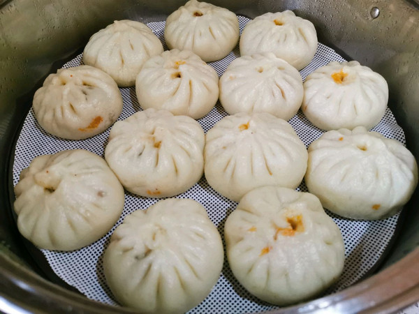 包好的包子放入加入水的锅中,先不要打火,盖上锅盖再次醒发10分中!然后开大火蒸20分钟!