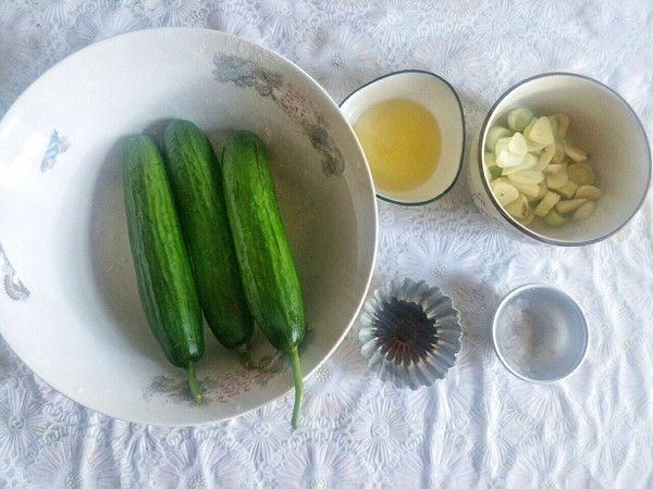 准备所需食材,把黄瓜洗净,葱蒜切片待用。