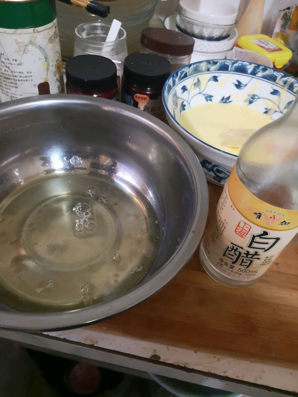 取出冷静好的蛋清,滴3-5滴(我是5滴)白醋,让蛋清更稳定