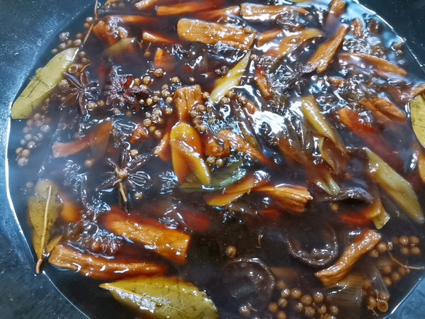 这个卤的过程决定了牛肉干的味道,要想好吃卤制是关键,把这个卤水配好倒入牛肉,大火煮开后小火卤四十分钟