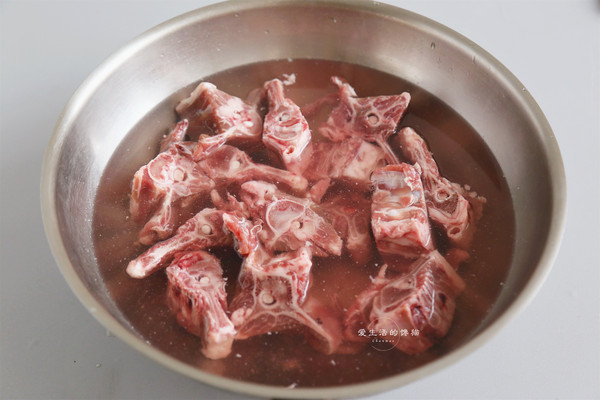 羊蝎子洗净后冷水下锅煮沸后再煮2分钟