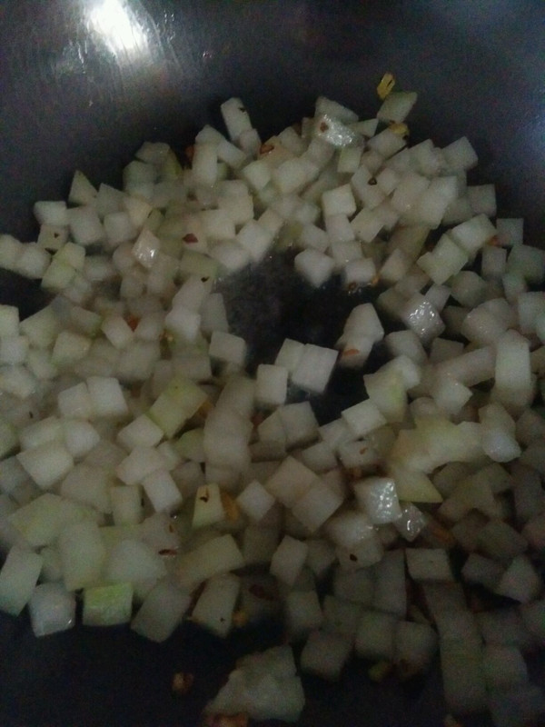 加半碗水,加盐,鸡精调味。等汤汁收干。
