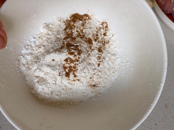 面糊制备。面粉➕泡打粉➕十三香,加水和成糊糊状。