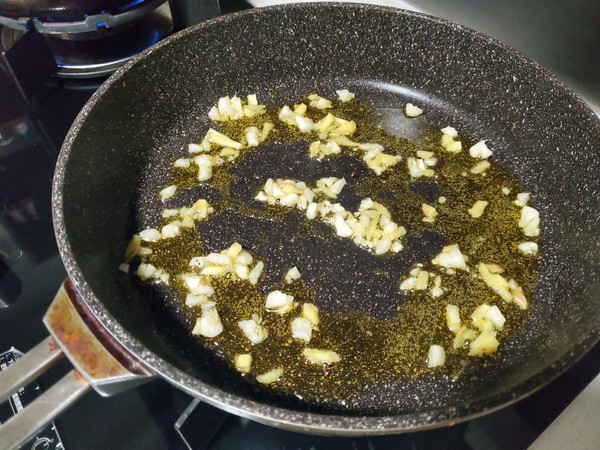 今天用平底锅放入油 爆香姜蒜