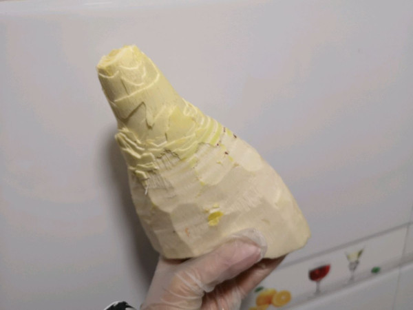 新鲜竹笋戴手套剥皮洗净切梳子状