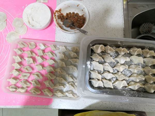 加了一根红萝卜,因为小孩不喜欢吃红萝卜所以只要是做馅我都会加点进去,剁碎了他们就吃不出来啦