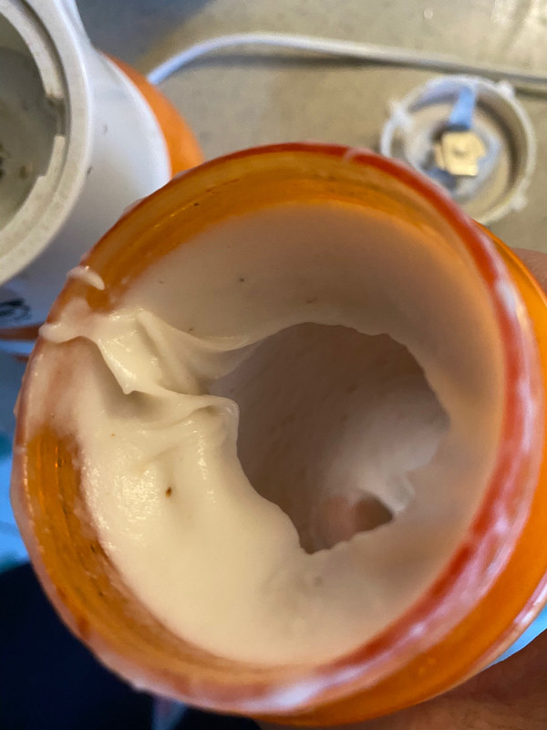 打好的样子,因为粘稠,所以打到一半就转不动了,可以加一点奶摇摇杯子