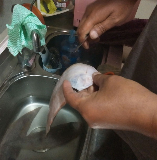 第二步:把鱼翻过来,在同样的位置再划一刀。