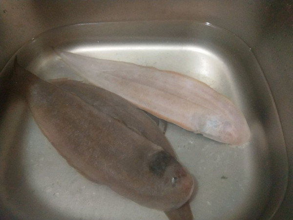 龙舌鱼剥了皮备用,为了方便烹饪,把鱼切成了两半,如果为了好看一些也可以不用切。