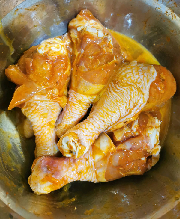 鸡腿拉几个口子。