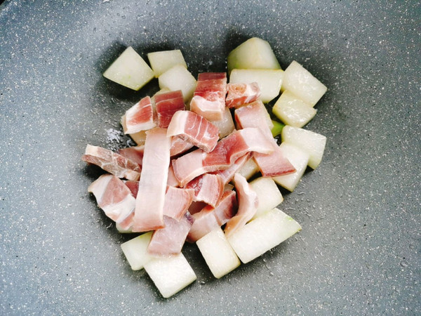 锅里倒入锅里油烧热,放入冬瓜块,翻炒至有点透明。