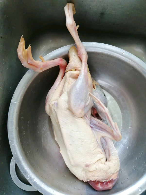 新鲜草鸭一只洗干净,南方地区有麻鸭更好。