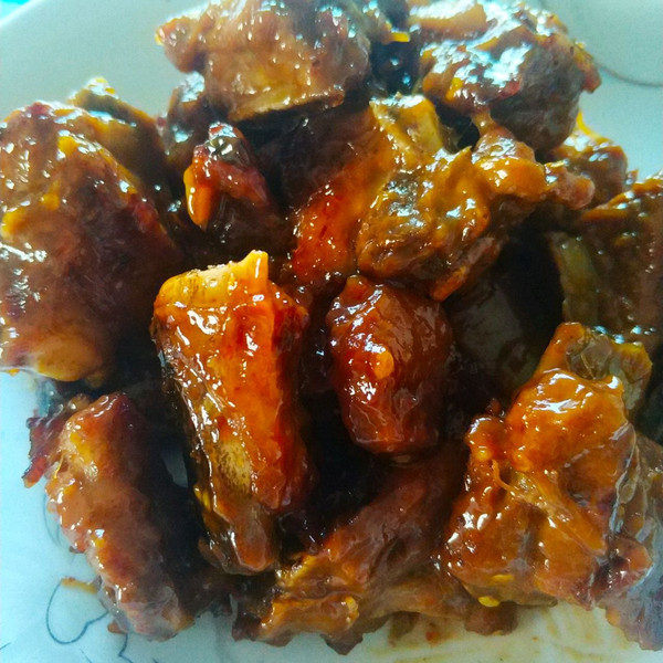 锅中热油,五分热,放入冰糖,熬成糖汁,发黄。