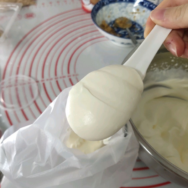 打发好的奶油倒进裱花袋(保鲜袋也)
