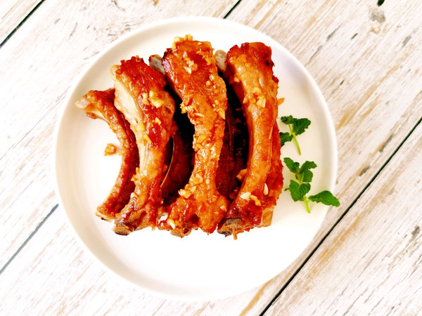 烤好的排骨酥香,而且蒜末烤熟之后非常好吃