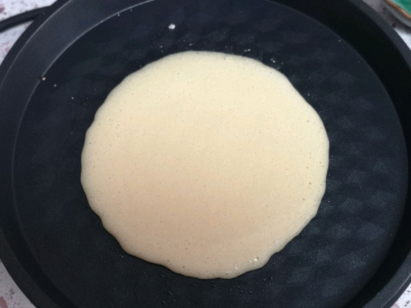 电饼铛加热,刷油(街上卖蛋烘糕的是那种小铜锅,咱们没有,用电饼铛代替了)