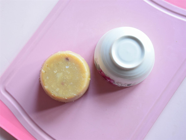 等放凉了,倒扣碗,慢慢的把蒸肉和碗分离,成了一个碗坨