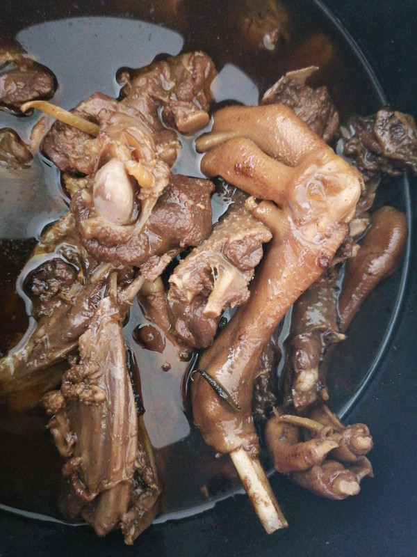 铁锅烧热,豆油下锅,葱姜大料爆香,大酱炒香,放入鹅肉翻炒