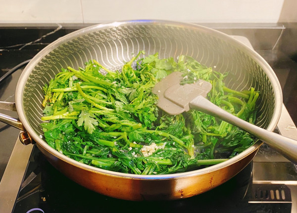 5分钟后倒入萝卜片,滴入香油,关火焖1分钟左右。