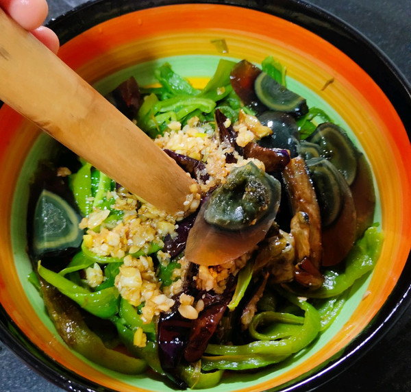 #我们约饭吧#家庭版皮蛋擂青椒茄子(