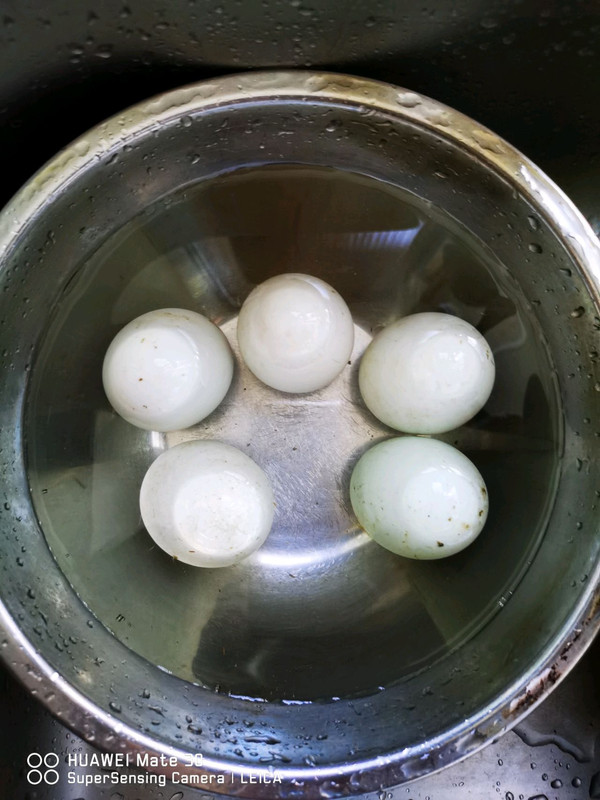 鸭蛋浸泡1分钟左右,拿出