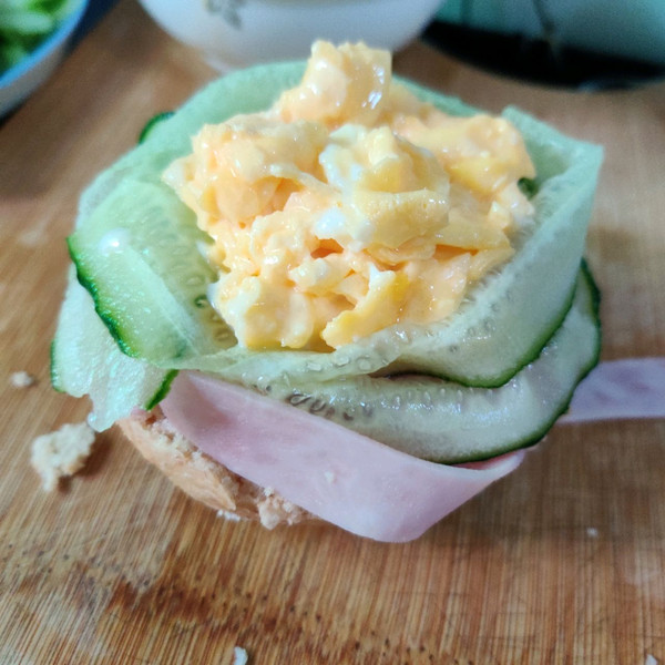 锅里加橄榄油倒入鸡蛋,蛋液凝固即可