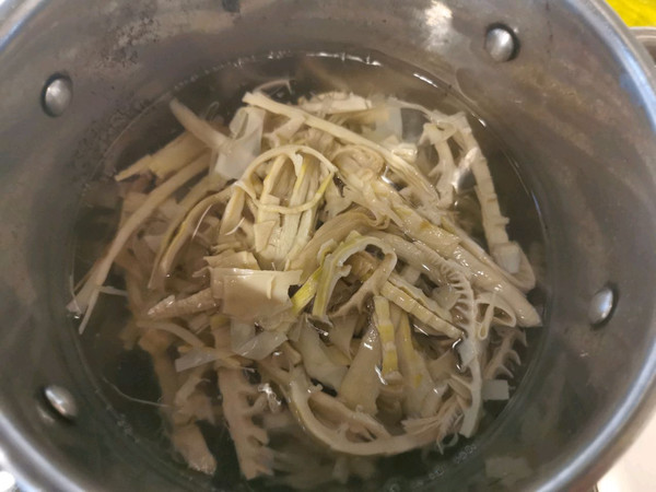 笋干泡水,我泡了好几个小时。去掉多余咸味。手撕成细条。