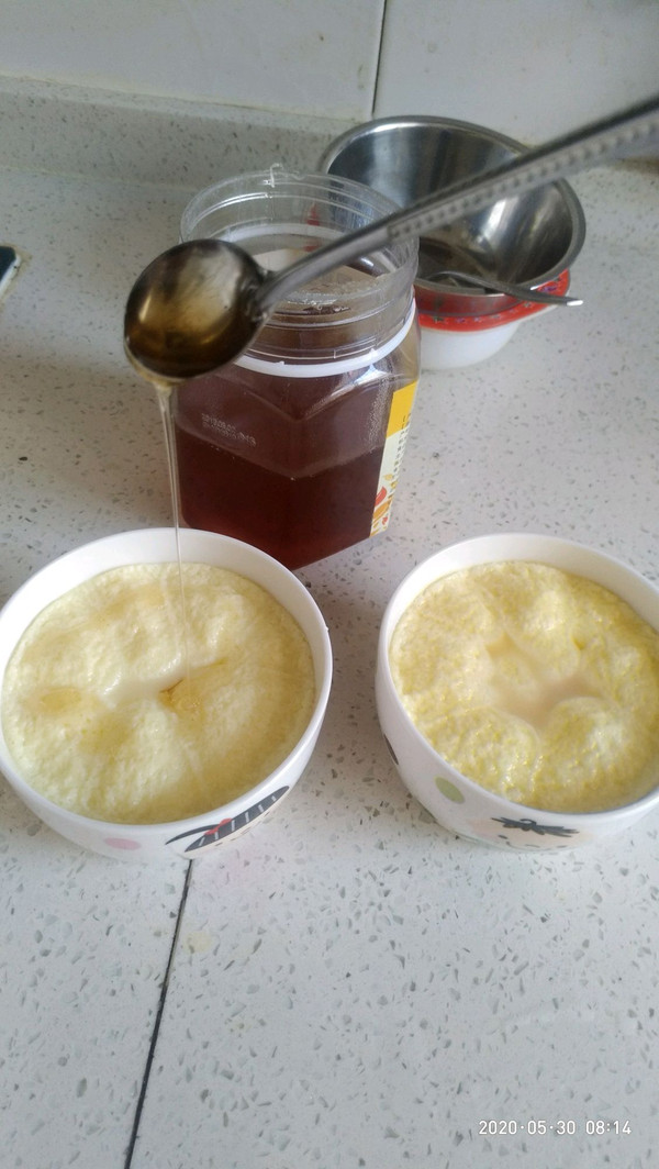 蒸好出锅,可以撒上一小勺蜂蜜。