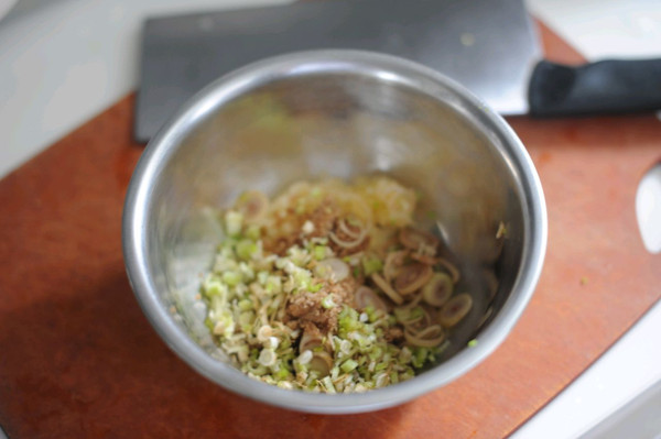 先准备腌料。如果你有搅拌机或者石臼,就把以上食材丢进搅拌机或者石臼,搅拌/碾压至匀质。如果你跟我一样,不想多洗一个机器/厨具,咱们就切一切吧。香茅只取靠近根部的一寸,切圈。大蒜切沫,香菜根洗干净切沫,椰糖买来的时候是跟红糖一样成块儿的,这里也用刀切碎。