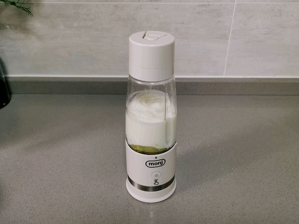 双击机子启动按钮,启动时将主机向下倾下45度,待2~3秒后,再正置摆放,这款monj真空便携榨汁杯与其他榨汁杯不同,带有真空锁鲜功能,榨汁也无需倒扣