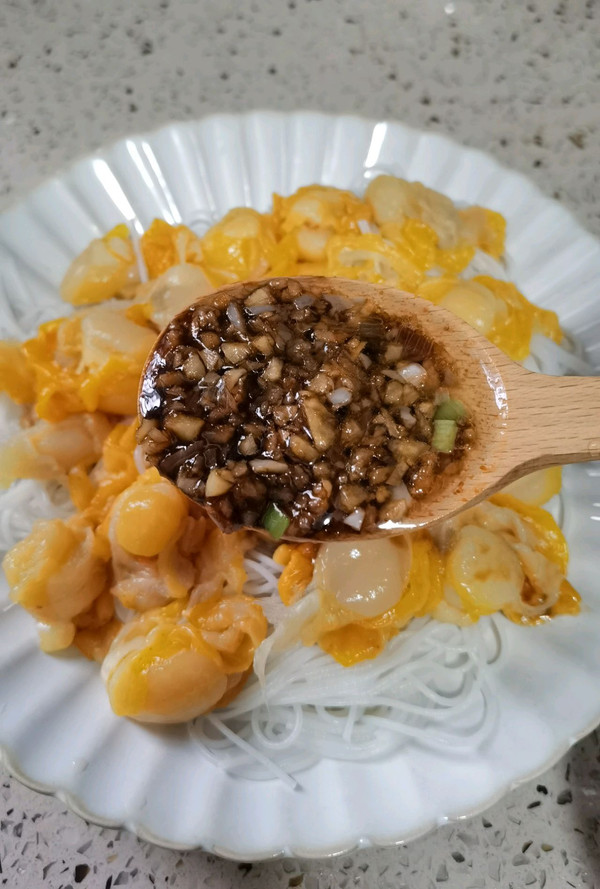 材料:扇贝肉,独蒜或普通蒜头,小米椒,葱,粉丝。