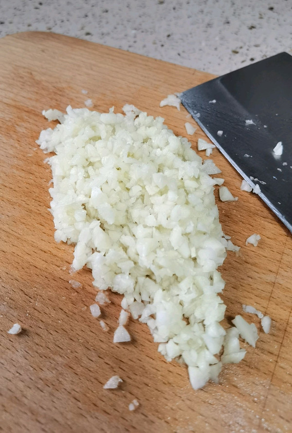 小火炒香葱白蒜蓉,闻到蒜香味即可。