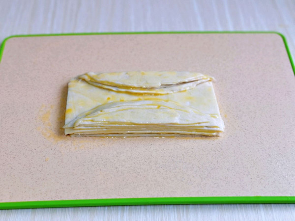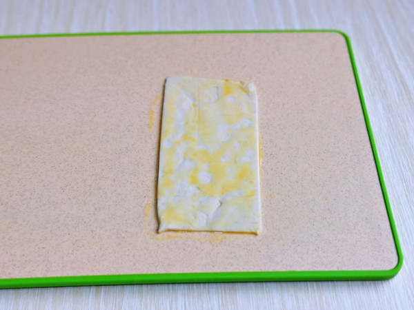 再把边角放在两侧,如图,刷上蛋液。