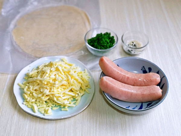 把切花刀的香肠放在中间。