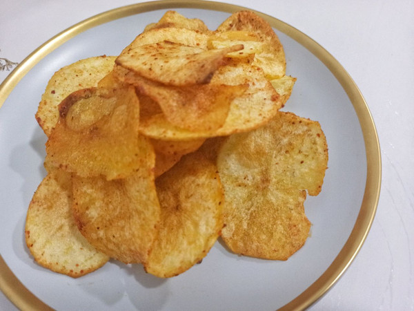 炸干后变硬点可以翻土豆,这样子的差不多可以出锅了。