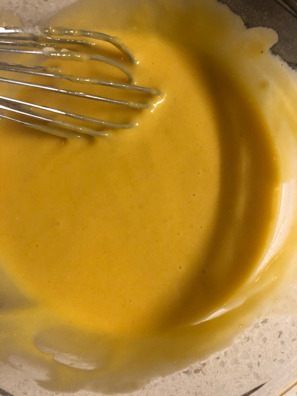 6.加入玉米油,继续搅拌,如果没有玉米油,用一些没有味道的油代替也可,大豆油和花生油绝对不行✋