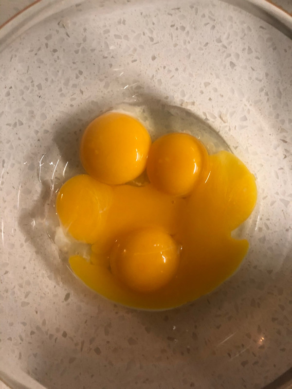 1.鸡蛋黄和鸡蛋清要干干净净分离,分别放在两个无水无油的盆儿里!一定要分的清清楚楚