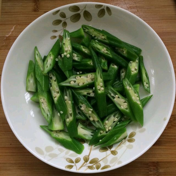 看秋葵变翠绿捞出,冷水过一遍!