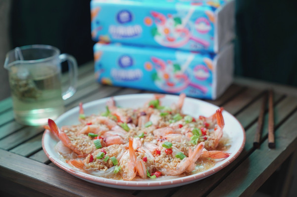 开背去虾线,用刀背在虾背上轻轻敲几下,防止虾成熟后变形